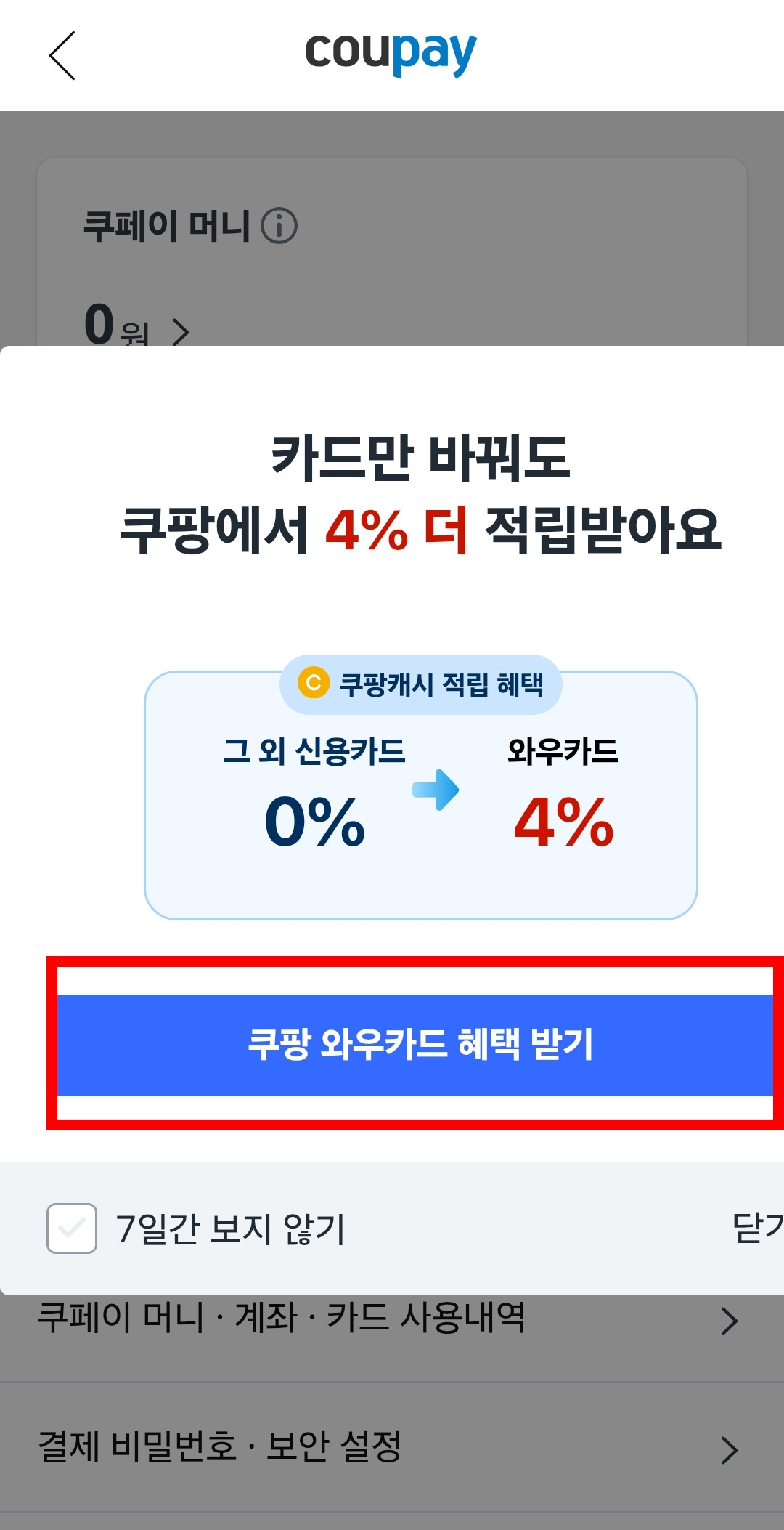쿠팡와우카드 신청 방법과 쿠팡 카드 등록 방법
